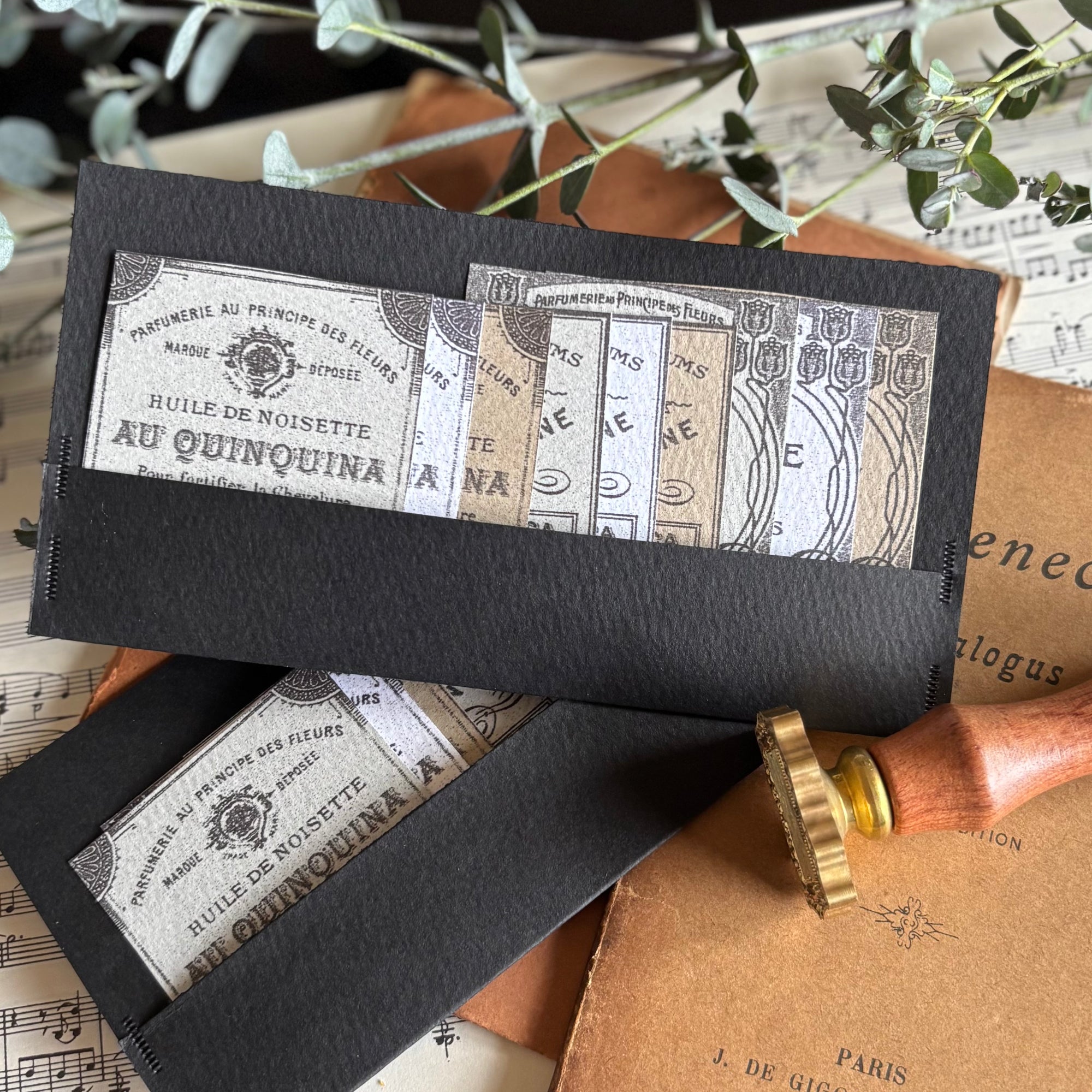 2024年に手作りした資材の総集編ブック。表紙から中ページのポケットやタグデザインまで、すべてハンドメイドです。実用的に、それでいて芸術的エレガントさにもこだわって作りました。