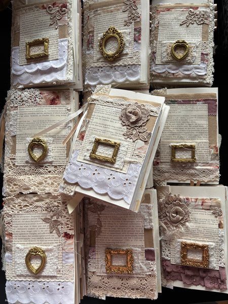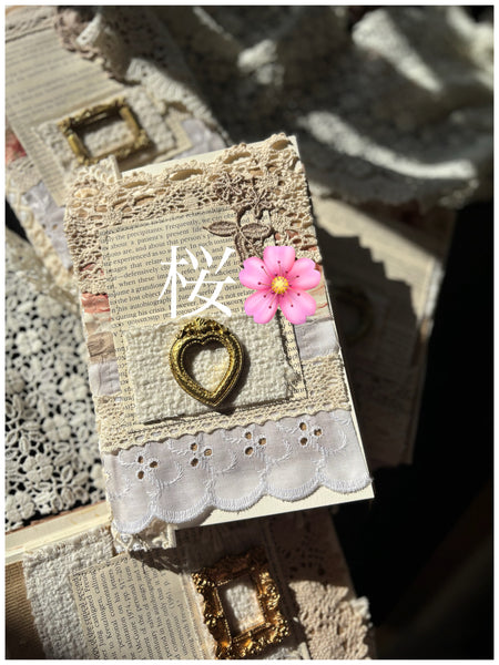 『ページを捲るごとにワクワクする』ジャーナルブック。ページの用紙からエフェメラ、タグ、リボンにレース...すべて独自のセンスで集めたものをバイディングしました。